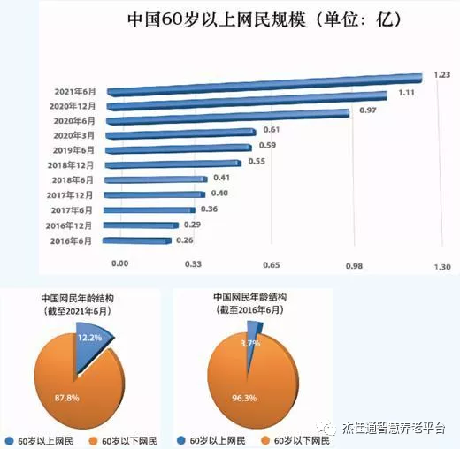 中國互聯網絡信息中心發布的第48次《中國互聯網絡發展狀況統計報告》顯示,截至2021年6月,中國網民規模達10.11億,其中60歲以上網民占比達12.2%,約1.23億人。而艾媒研究院發布的《2021年中老年群體觸網行為研究報告》顯示,51%的中老年日均上網時長超過4小時