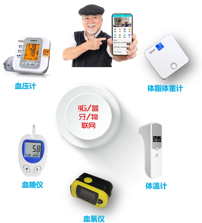 1)血壓計、血氧計、血糖儀、體脂秤、體溫計.....;2)健康數據查看;3)一鍵呼叫養(yǎng)老服務中心;4)一鍵提交養(yǎng)老需求(生活幫助、訂餐、購物、助醫(yī))。5)適合居家/社區(qū)養(yǎng)老上門監(jiān)測和社區(qū)日間照料中心或養(yǎng)老驛站監(jiān)測。